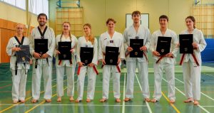 Nach intensiver Vorbereitung und großer Anspannung am Prüfungstag, konnten 8 Prüflinge der KJI am Ende des Tages den Erfolg in Form einer Dan-Urkunde in Händen halten.